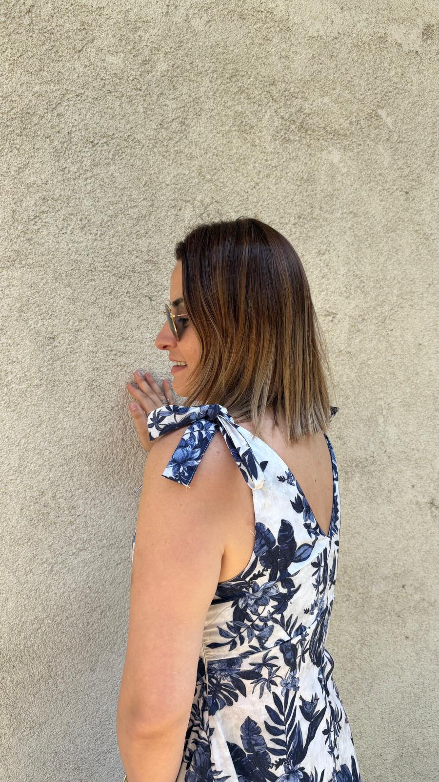 Feminen ve zarif görünümüyle dikkat çeken çiçek desenli V yaka elbise, bağlamalı askı detayı ile romantik bir hava katıyor. Hafif ve dökümlü kumaşı sayesinde yaz aylarının vazgeçilmez parçası olacak.